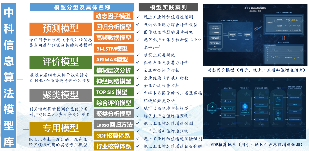 基于中科信息人工智能、大數據分析理論指導,采用機器學習、深度學習及AIGC等先進技術,本平臺不斷優化基于神經網絡、聚類分析等方式的4大類13種預測評價算法模型,提高了預測精準度,增強了用戶體驗的便捷性與智能化水平。